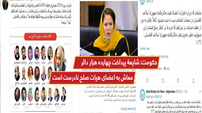 حکومت: شایعۀ پرداخت چهارده هزار دالر معاش به اعضای هیات صلح نادرست است