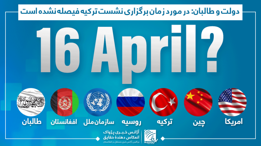همچنان داکتر محمد نعیم وردک سخنگوی دفتر سیاسی طالبان، امروز حوالی ساعت ۱:۳۰ بعد از چاشت، در مورد برگزاری نشست ترکیه، در تاریخ ۱۶ اپریل به آژانس خبری پژواک گفت: “در این مورد کدام فیصله صورت نگرفته است.”