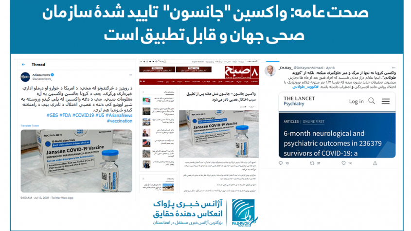 نتیجه گیری: گزارش های منتشره مبنی بر اینکه واکسین “جانسون- جانسون “برای گیرنده ها خطر ایجاد اختلال عصبی را دارد، از سوی وزارت صحت عامه رد شد.