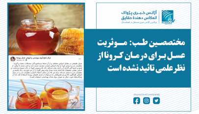 - مختصصین طب: از نظرعلمی موثریت عسل برای درمان کرونا تایید نشده است- کابل(پژواک، ۴ ثور۱۴۰۰): برخی کاربران شبکههای اجتماعی و شهروندان می گویند که استفاده ازعسل، سبب تداوی بیماری کرونا می شود؛ اما آگاهان طب آن را رد کرده و میگویند که استفادۀ آن دراین مورد، بنیاد علمی ندارد. شایعات: «مرکز جمع آوری پروسس و فروش عسل روستا»، در صفحۀ اجتماعی فیسبوک، بخاطربازاریابی تولیدات… Read More »