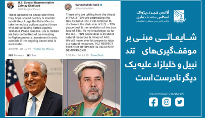 - شایعاتی مبنی بر موقفگیریهای تُند نبیل و خلیلزاد علیه یک دیگر نادرست است- کابل (پژواک، ۱۶ سرطان ۱۴۰۰): برخی کاربران رسانه های اجتماعی تصاویری ظاهراً از تویت…