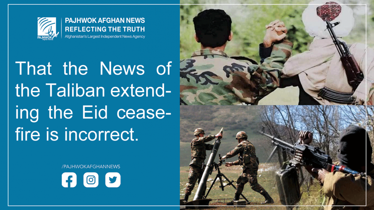 Outcome: News circulating in social media regarding Taliban extending ceasefire beyond Eid has been rejected by the Taliban and said they have no plan to extend the truce.