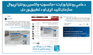 - د روغتیا وزارت: «جانسون» واکسین د روغتیا نړیوال سازمان تایید کړی او د تطبیق وړ دیکابل (پژواک، ۲۳ چنګاښ ۱۴۰۰): د عامې روغتیا وزارت هغه خپاره شوي راپورونه رد…