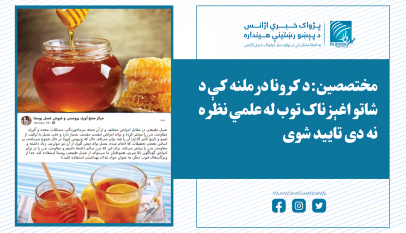 - د طب متخصصین: د کرونا درملنه کې د عسلو اغېزناک والی له علمي نظره نه دی تایید شوی- کابل (پژواک، ۴ غويی۱۴۰۰): د ټولنیزو شبکو ځني کاروونکي او هېوادوال وايي چې شات د کرونا درملنې لپاره ګټور دي خو د طب برخې پوهان دغه خبره ردوي او وايي چې په دې برخه کې له شاتو استفاده علمي بنسټ نه لري. اوازې: «روستا د عسل راټولولو، پروسس او پلورلو… Read More »